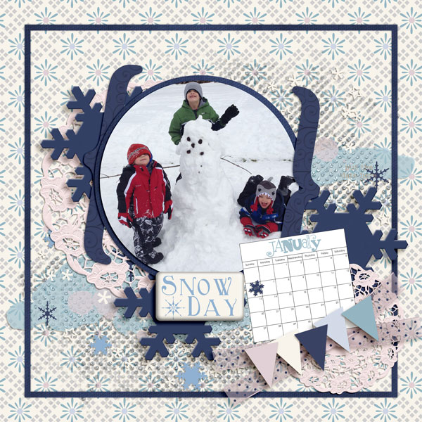 I love this layout by Karla. Her layering around the photo really draws your eye to it. Those little guys look like they are having a great time in the snow!